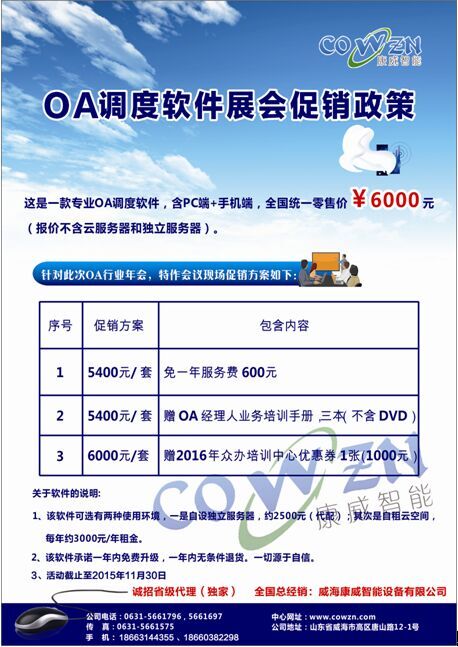 附:OA調(diào)度軟件大會(huì)促銷政策(截止20151130日)