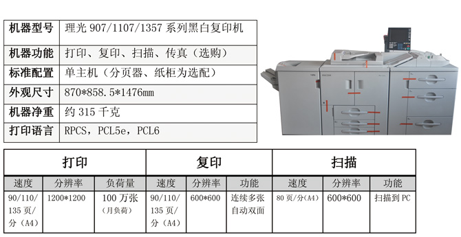 理光907/1107/1357系列黑白復(fù)印機
